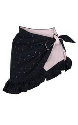 Find yourself instantly transported to an alpine oasis every time you slip into our Daydream cover-up skirt now available in three new color-ways. Baby blue comes with an eye-catching red liner and black comes with a chic baby pink liner. Green comes without a liner. This versatile cover-up is perfect for drinking champagne while sitting with your feet in the jacuzzi as you watch snowflakes fall from the sky. Endless panoramic mountain views and the scent of evergreen trees delight the senses as you dance and laugh the night away under the stars. Featuring a flattering self-tie that elongates legs, romantic ruffles adorn the bottom of this breathtaking piece that you will never want to take off again. Pair this beautiful cover-up with an Alpine bikini for the poolside look of your dreams.