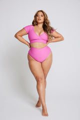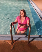 Model, Catherine, wears a size XL in the Magenta Lover "Cheeky" Bottoms