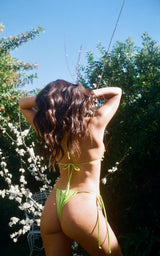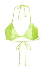 Swim with the mermaids in a mystical lagoon while wearing the Alyssa top now available in mountain dew satin. Reminiscent of colorful mermaid scales or sparkling emeralds, this delicate top features adjustable straps for a flawless, comfortable fit. The triangle string bikini style is timeless and universally flattering. Pair this top with the coordinating Alyssa bottoms in mountain dew satin, your new favorite summer bikini is here.