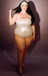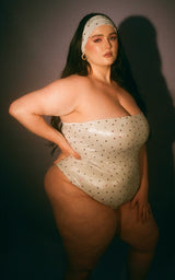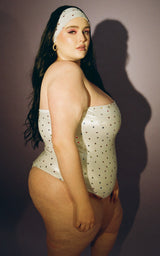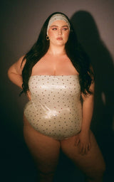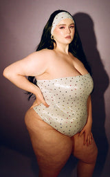 Manifest your dream reality in the Azalea one piece now available in supernova pink and galactic hearts. Featuring a minimalist strapless style and thong backside, this sexy suit will make sure you don’t fall victim to tan lines. Can be worn swimming, or with shorts for a flirty summer daytime or nighttime look. You won’t miss an opportunity to go to the pool when you own a suit this cute.