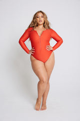 Styled like a bodysuit, the Marseilles one-piece is long-sleeved and features a flirty front zipper and cheeky back so you can show off your sultry curves. Wear this stunning suit on its own to the beach during the day, and then slip into shorts and heels at night because the fun is never-ending. Available in rose red and black houndstooth, the Marseilles one-piece was inspired by dreamy days in Marseille full of bouillabaisse, red wine, and watching the boats go by.