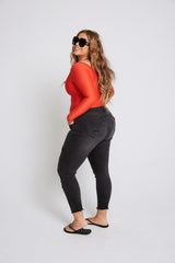 Model, Catherine, wears a size XL in the Rose Red Marseilles.