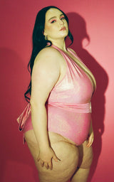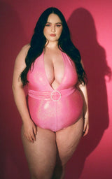 The best kind of swimsuit makes you fall in love with your body every time you wear it. Introducing the Diamond Circle one piece: a suit designed to make a sexy, confident statement. This halter neck one piece features a diamond circle embellishment, an open back and a plunging neckline. A fabric belt across the midriff ties in the back as a chic bow.