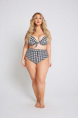 Model, Bree, wears a size 1x in the Gingham Dolly Top.