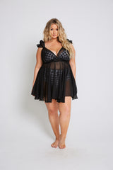 Model, Hunter, wears size 2X in the Black Vinatge Poolside.