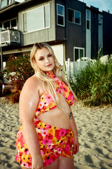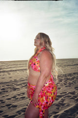 Believe in your dreams, try your best, and watch all possibilities bloom into existence. The Celine top is now available in Pink Daisy and is our “it girl” bikini top of summer. Featuring a chic cross wrap halter neck and 3 buttons on the back of the top neck strap, this top is easily adjustable so you can always get the perfect fit. Fall in love with the colors of spring and summer in this vibrant, playful top that invokes feelings of warmth and happiness. Made with love in sunny Los Angeles, California.