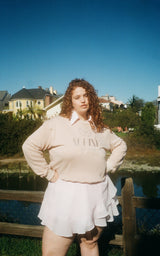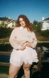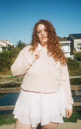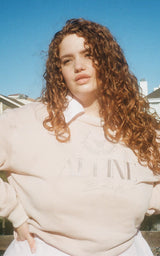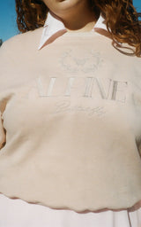 So snuggly and soft as a cloud, the Marina Crew Sweatshirt is available in Rosé and Beige. The Alpine logo on the front is embroidered and luxurious. Made for chilly evenings or curling up with a good book by the fire, the Marina Sweatshirt takes dreamy loungewear to a new level. Pair this with the Seaside Shorts or over the Celeste chiffon set, for loungewear you can wear to bed, the grocery store, or on a weekend getaway. You won’t want to wear anything else.