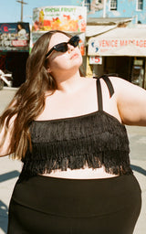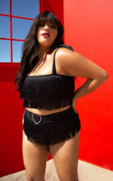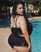 Sometimes a swimsuit makes you want to dance, and this is definitely one of them! Adjustable shoulder ties will give you the perfect secure fit. The motion of the fringe will truly make you want to play your music loud and show the suit in motion. Layers of fringe are ready to bidi bidi bom bom at a pool day/ night club, or make a statement at the beach.