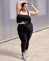 Model, Vanessa, wears a size 1x in the Black Te Amo Top.