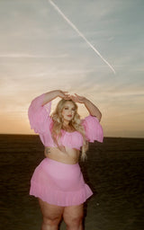 We designed this special piece for all the free-spirited, feminine goddesses who live with love in their hearts. The long sleeve Tatum top is now available in the most perfect Bubblegum Pink and features whimsical touches such as layers of ruffles and a tiny, delicate bow on the chest. Play in the sunshine and move your body to the sound of the ocean waves, this gorgeous top pairs perfectly with the matching Tatum skirt in Bubblegum Pink. Made with love in sunny Los Angeles, California.