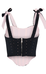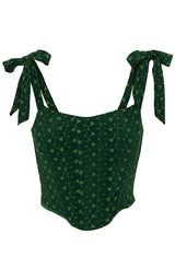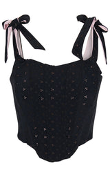 We are so excited to introduce our new Corset top! We designed this very special top to fulfill your ultimate corset fantasies. Featuring a beautiful stretchy eyelet textile for ultimate comfort, this elegant piece features romantic bow shoulder straps and a structured bodice that gives your curves flexible and comfortable shape all day long. Available in green, baby blue with red contrast, and black with baby pink contrast. This is the perfect top for enjoying a heirloom tomato gazpacho and a glass of Sauvignon Blanc at the ski lodge before an evening of window shopping in the quaint and bustling village town.