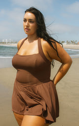 Crafted in our ultra-soft rib fabric, it feels smooth against the skin while offering the perfect amount of stretch for comfort and support. Available in Espresso, Pink, and Black, this mini dress was designed to be versatile and eye-catching. Pair it with our Mimi Top for a chic layered look, or wear it on its own over swimwear or as a standalone piece.