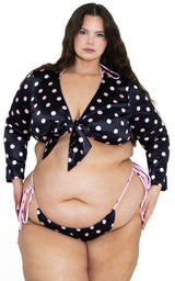 Featuring a deep V neckline and adjustable front tie closure, The Mimi allows you to style it your way, wear it loosely tied for a relaxed feel or cinched for a more sculpted silhouette. The long sleeves add a sleek, polished touch while keeping the look playful and feminine.