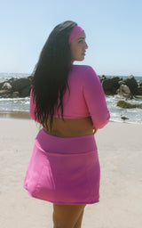 Featuring a flattering thick waistband, a flared A-line shape, and built-in shorts for a skort style, the Sugar Skort is versatile enough to wear in so many different ways. Available in Espresso, Pink, and Black.