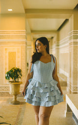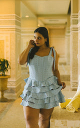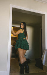 Twirl under the white fir and maple trees while wearing the romantic Talulah skirt. This wardrobe essential is now available in stretchy swim eyelet textile and three new color-ways: green, baby blue with red contrast, and black with baby pink contrast. Five flirty ruffles adorn this special skirt and give it so much beautiful movement. Bring holiday cheer wherever you go when you put on the Talulah skirt. Match it with any Alpine top for a truly elevated look that will have you going on adventures all winter long.